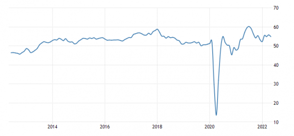 Предварительные данные по индексам деловой активности в еврозоне оказались заметно хуже прогнозов. Так, производственный индекс снизился с 55,5 до 54,4
