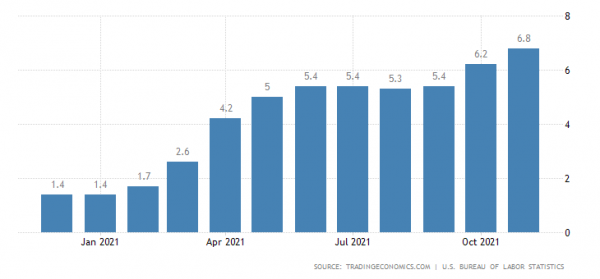 В итоге на рынке стали преобладать панические настроения, ведь повышение процентных ставок приведет к неминуемому сжатию спекулятивной составляющей и обвалу на финансовых рынках. А все из-за крайне высокой инфляции, находившейся на рекордном с 1990 года уровне. Участники рынка так сильно сами себя напугали, что опубликованные в пятницу данные по инфляции стали для них чем-то вроде облегчения.