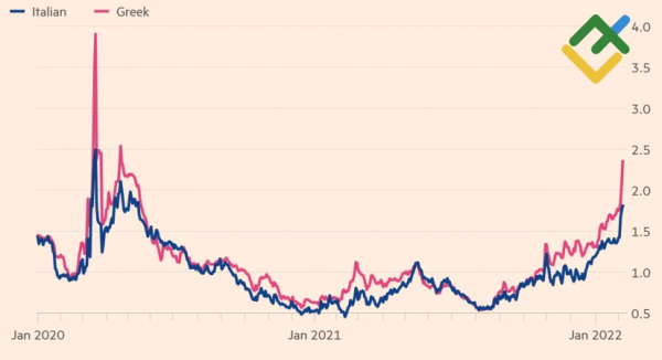 На своем первом с момента февральской встречи Управляющего совета выступлении Кристин Лагард попыталась сгладить свою недавнюю «ястребиную» риторику. И были причины. Доходность итальянских облигаций достигла максимального уровня с апреля 2020, а их спред с немецкими аналогами, ключевой показатель стресса на долговых рынках еврозоны, — самого пика с июля 2020.